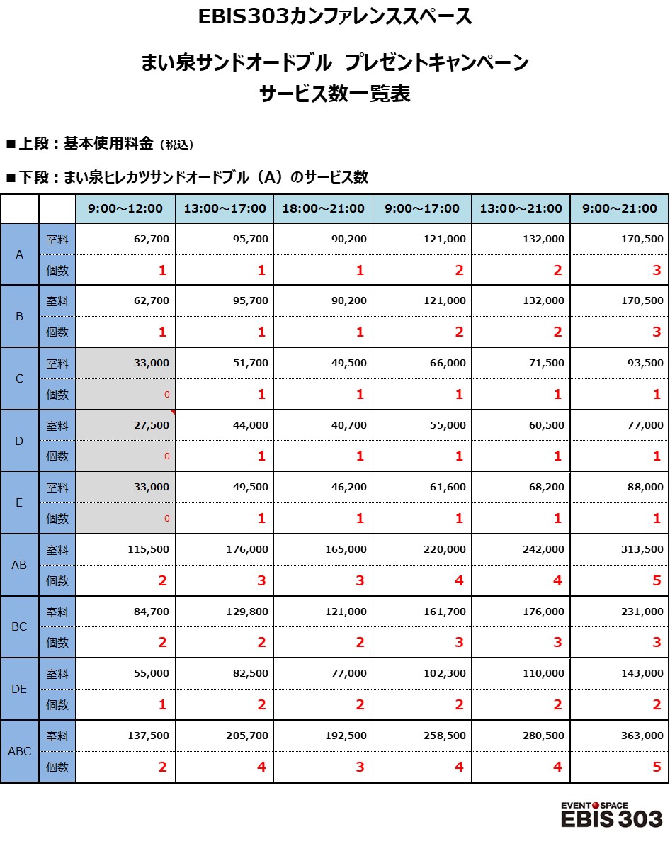 ■申込対象:カンファレンススペースC,D,Eの午前枠(9時~12時)を除いたすべての部屋・時間枠をご契約いただいたお客様