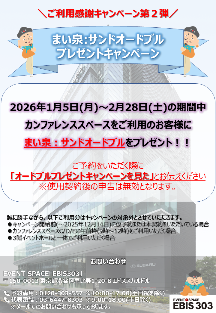 - カンファレンススペース「まい泉サンドオードブル プレゼントキャンペーン」開始!
